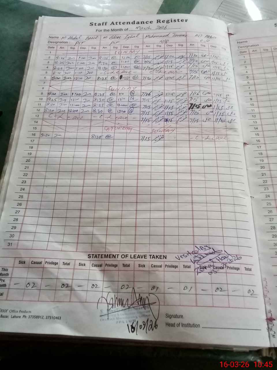 | 37**** | Kh**** UrRe**** | ESE Science | Contract | 0 | 0 | 28 | 0 | 0 | 0 | 0 | 0 | 0 | Absent (Un-Authorized) |