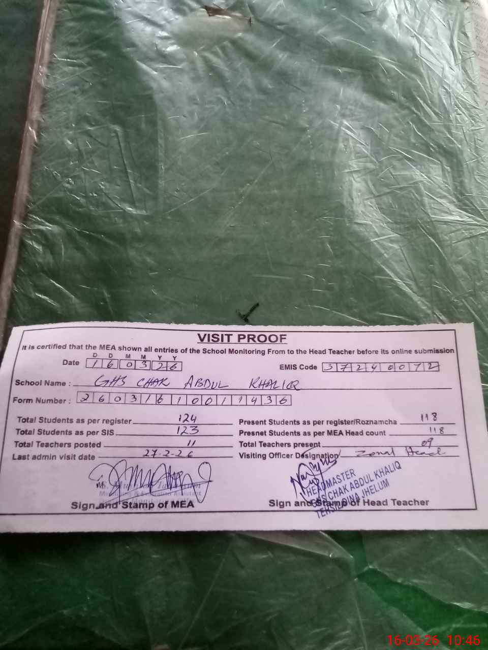 | EMIS Code: 37240072 | Name of School: GHS CHAK ABDUL KHALIQ | |||