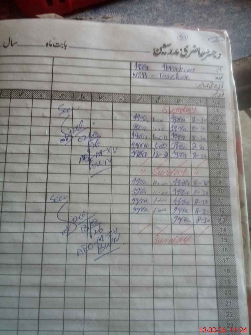 | CNIC | Full Name | Designation | R/C | Absence During Last Calender Month |