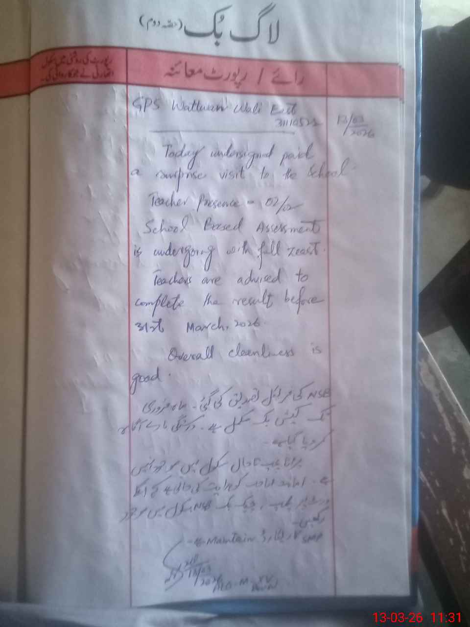 | EMIS Code: 31110522 | Name of School: GPS WATTWAN WALI EAST | |||