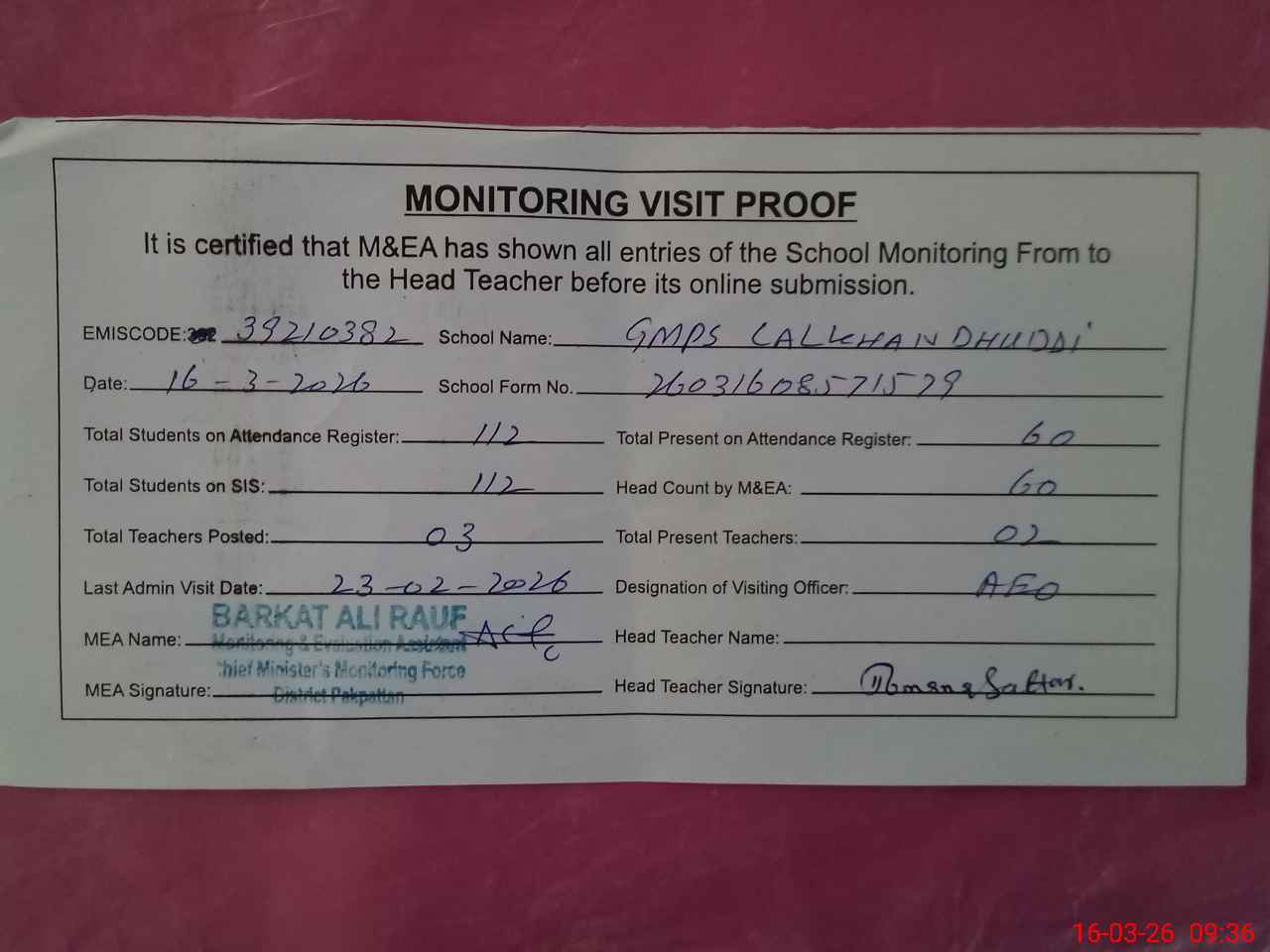 | EMIS Code: 39210382 | Name of School: GMPS LAL KHAN DHUDI | |||