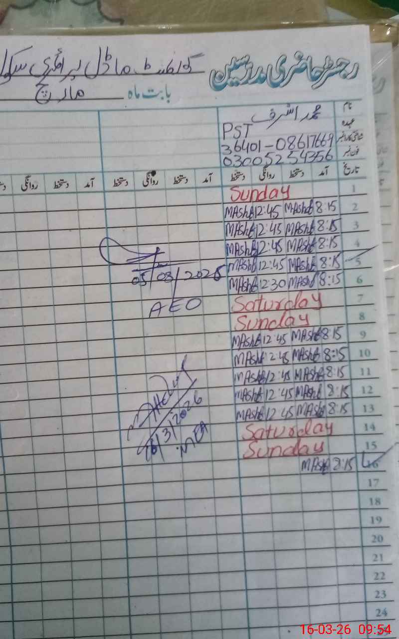 | Name: MU**** AS**** Designation: (School Headmaster's/Headmistress's) PST Phone/Cell Number: 03**** |