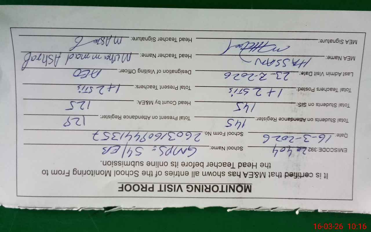 | EMIS Code: 39220404 | Name of School: GMPS 54 EB PO 50 EB | |||