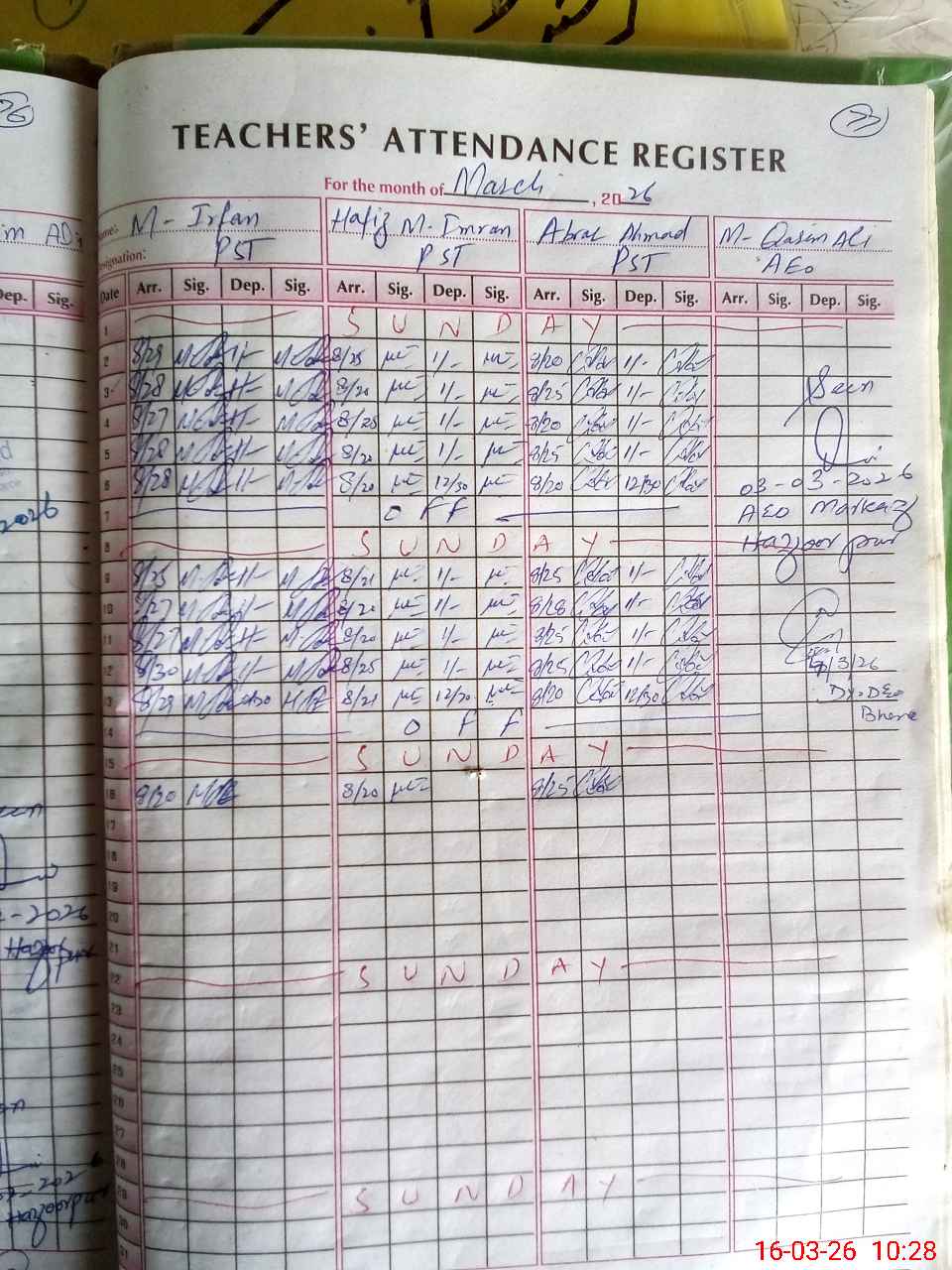 | Name: MU**** IR**** Designation: (School Headmaster's/Headmistress's) PST (SCI-MATH) Phone/Cell Number: 03**** |