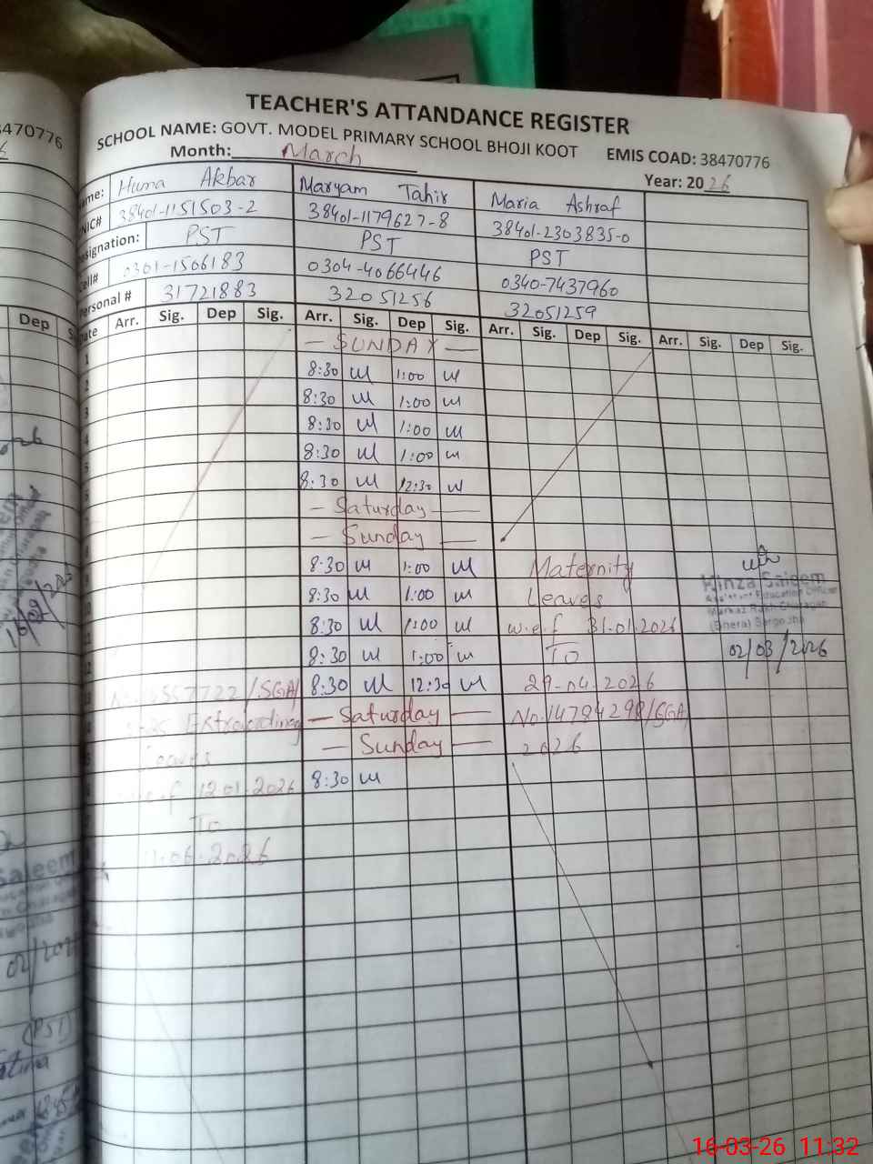 | 38**** | Ma**** As**** | PST Science/Maths | Regular | 0 | 0 | 0 | 0 | 0 | 0 | 0 | 0 | 0 | Maternity |