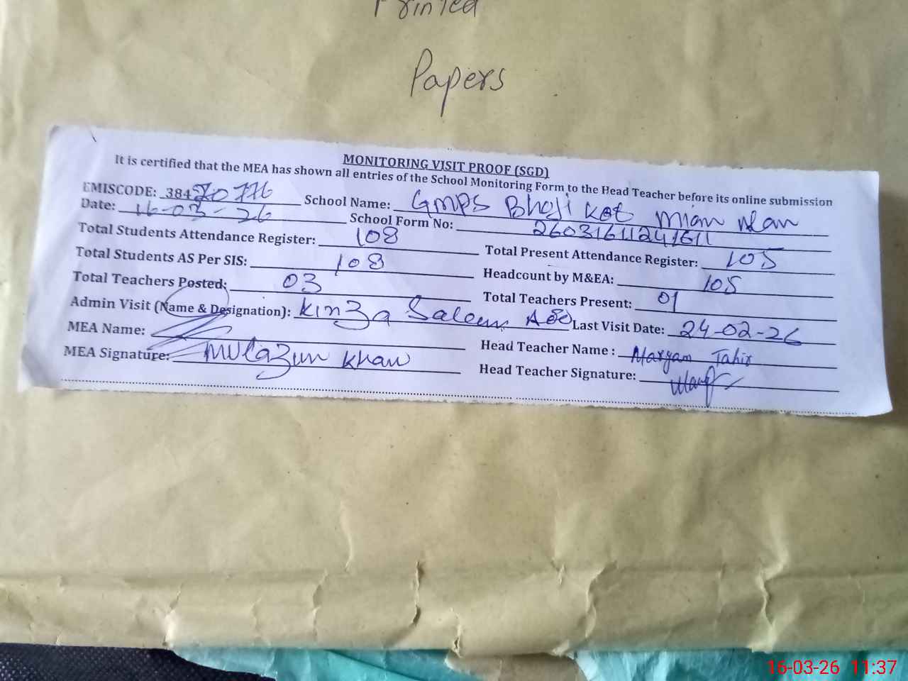 | EMIS Code: 38470776 | Name of School: GMPS BHOJI KOT (MIAN ALAN) | |||