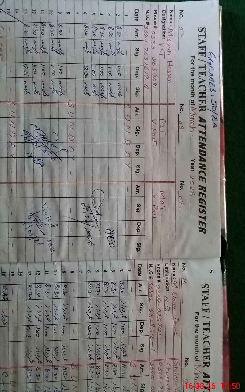 | Name: SA**** AS**** Designation: (School Headmaster's/Headmistress's) SST (GENERAL) Phone/Cell Number: 03**** |