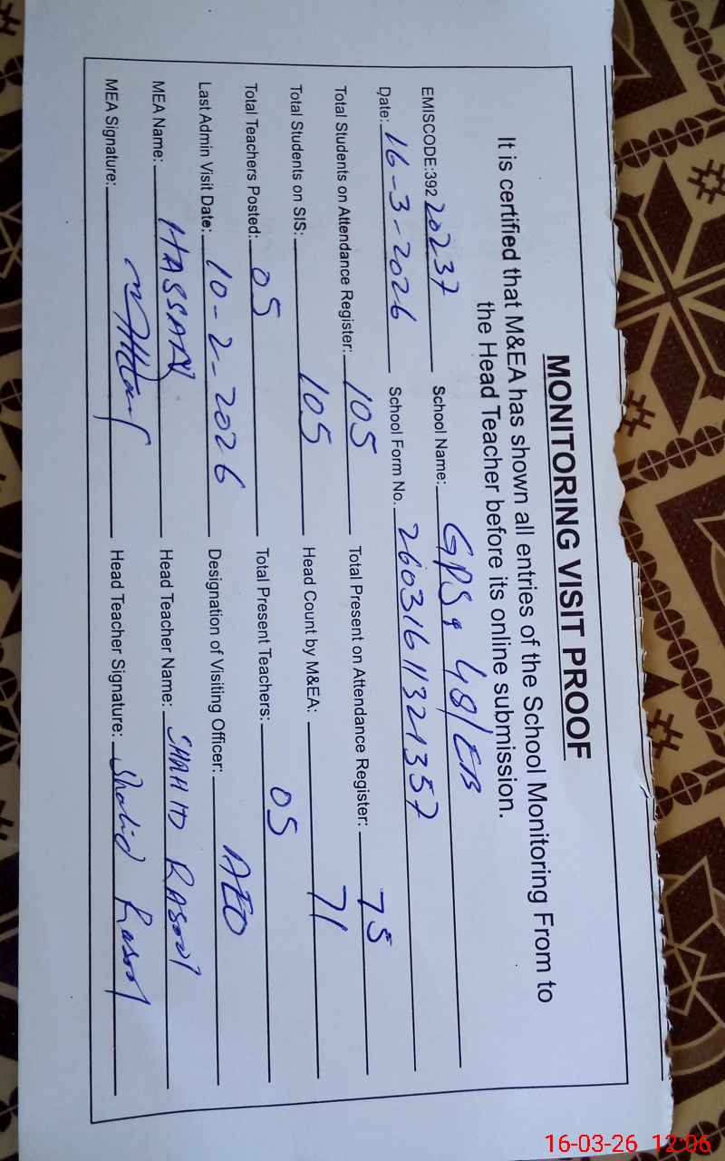 | EMIS Code: 39220237 | Name of School: GPS 48 EB P.O 50 EB ARIF WALA | |||