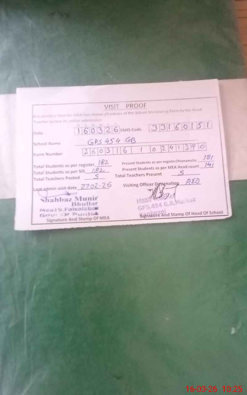 | EMIS Code: 33160151 | Name of School: GPS 454 GB | |||