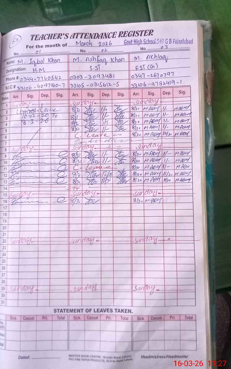 | Name: MU**** IQ**** KH**** Designation: (School Headmaster's/Headmistress's) HEAD MASTER Phone/Cell Number: 03**** |