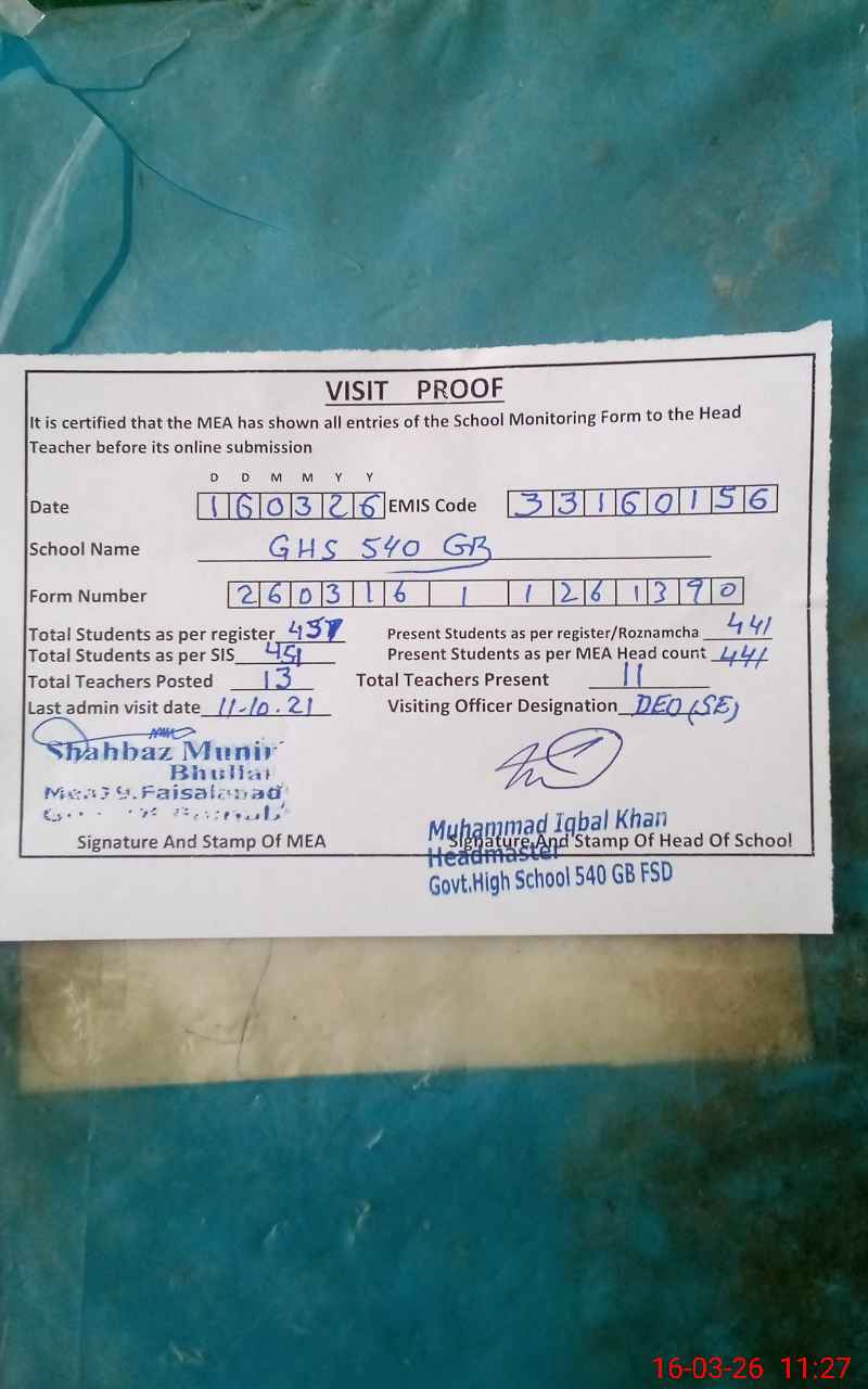 | EMIS Code: 33160156 | Name of School: GHS 540 GB | |||