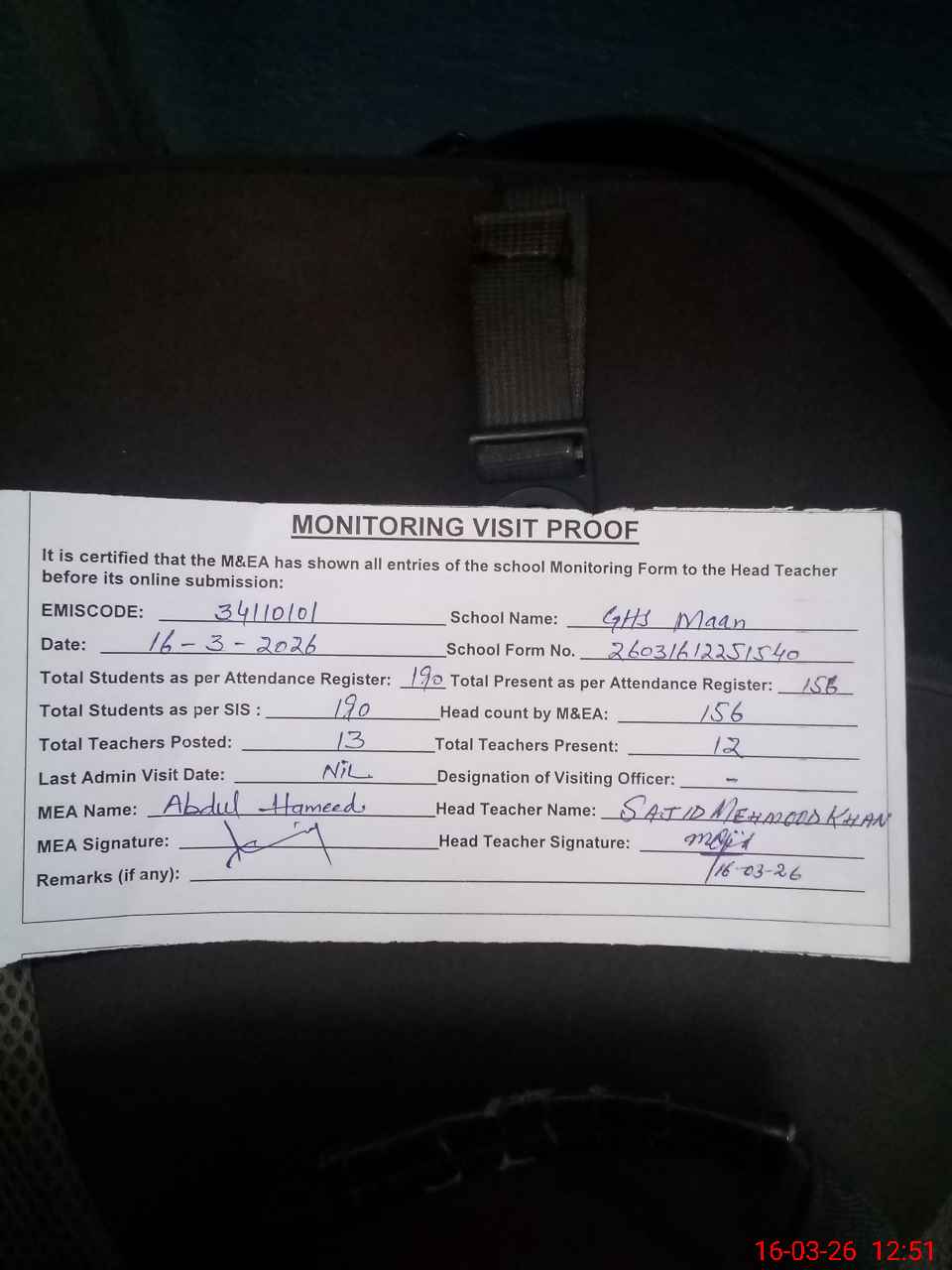 | EMIS Code: 34110101 | Name of School: GHS MAAN | |||