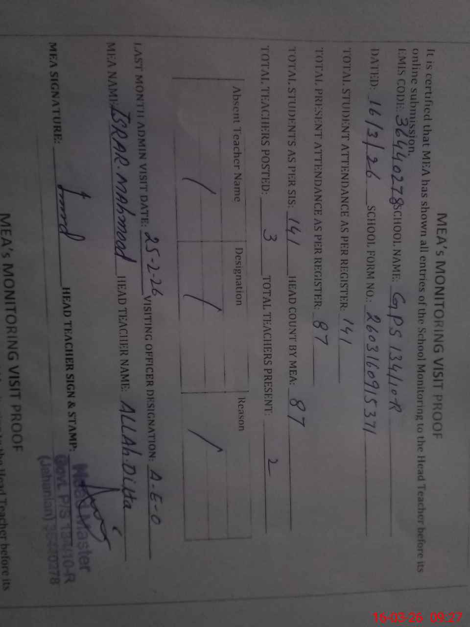 | EMIS Code: 36440278 | Name of School: GPS 134/10-R, JAHANIAN | |||