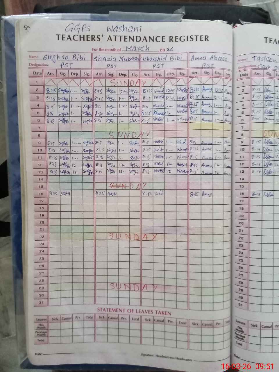 | Leave | Duty | Absent | Maternity | Medical | Ex- Pak |