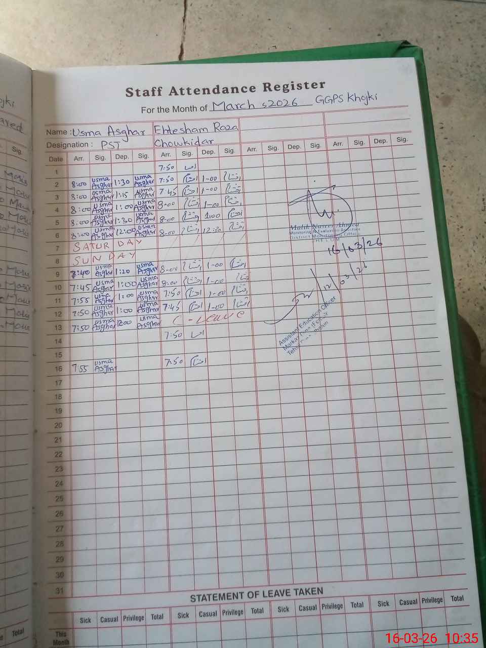 | Monitoring Date: 16-03-2026 | Start Time: 16-03-2026 10:06 AM | End Time: 16-03-2026 10:37 AM | Name of MEA: Na**** Ah**** | |