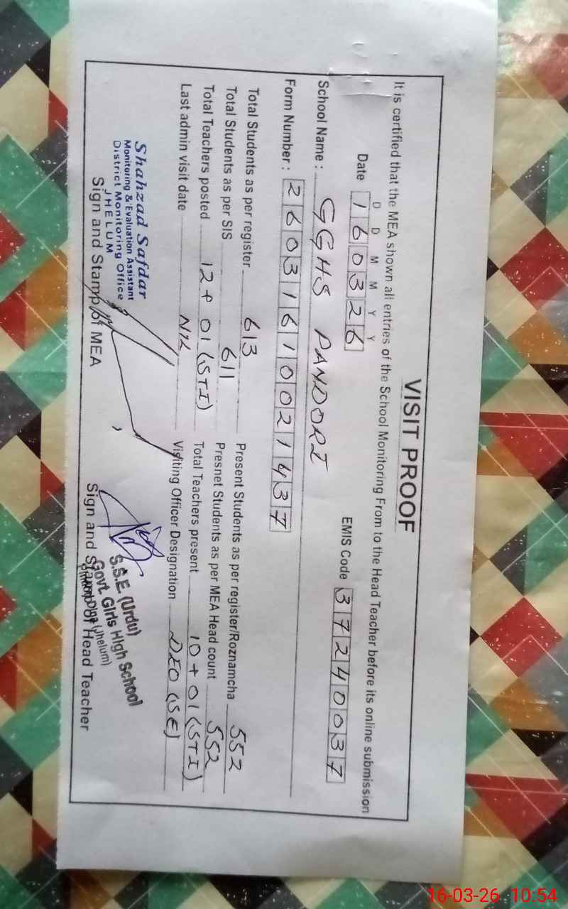 | EMIS Code: 37240037 | Name of School: GGHS PANDORI | |||