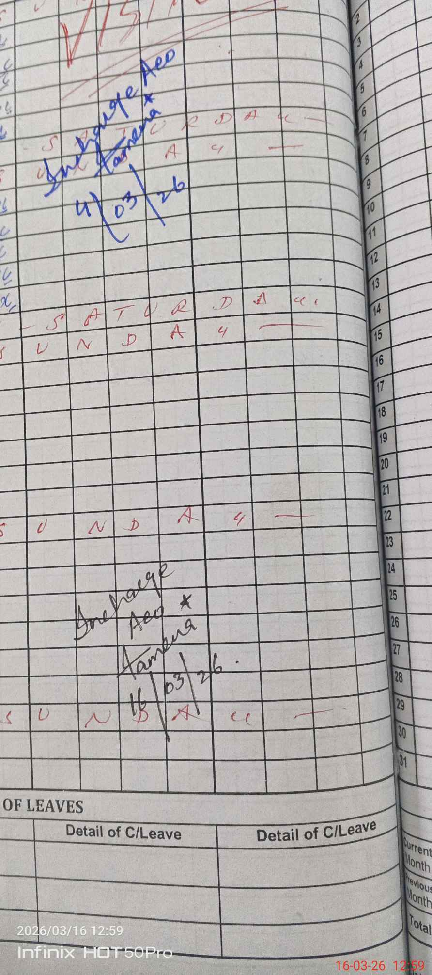 | Leave | Duty | Absent | Maternity | Medical | Ex- Pak |