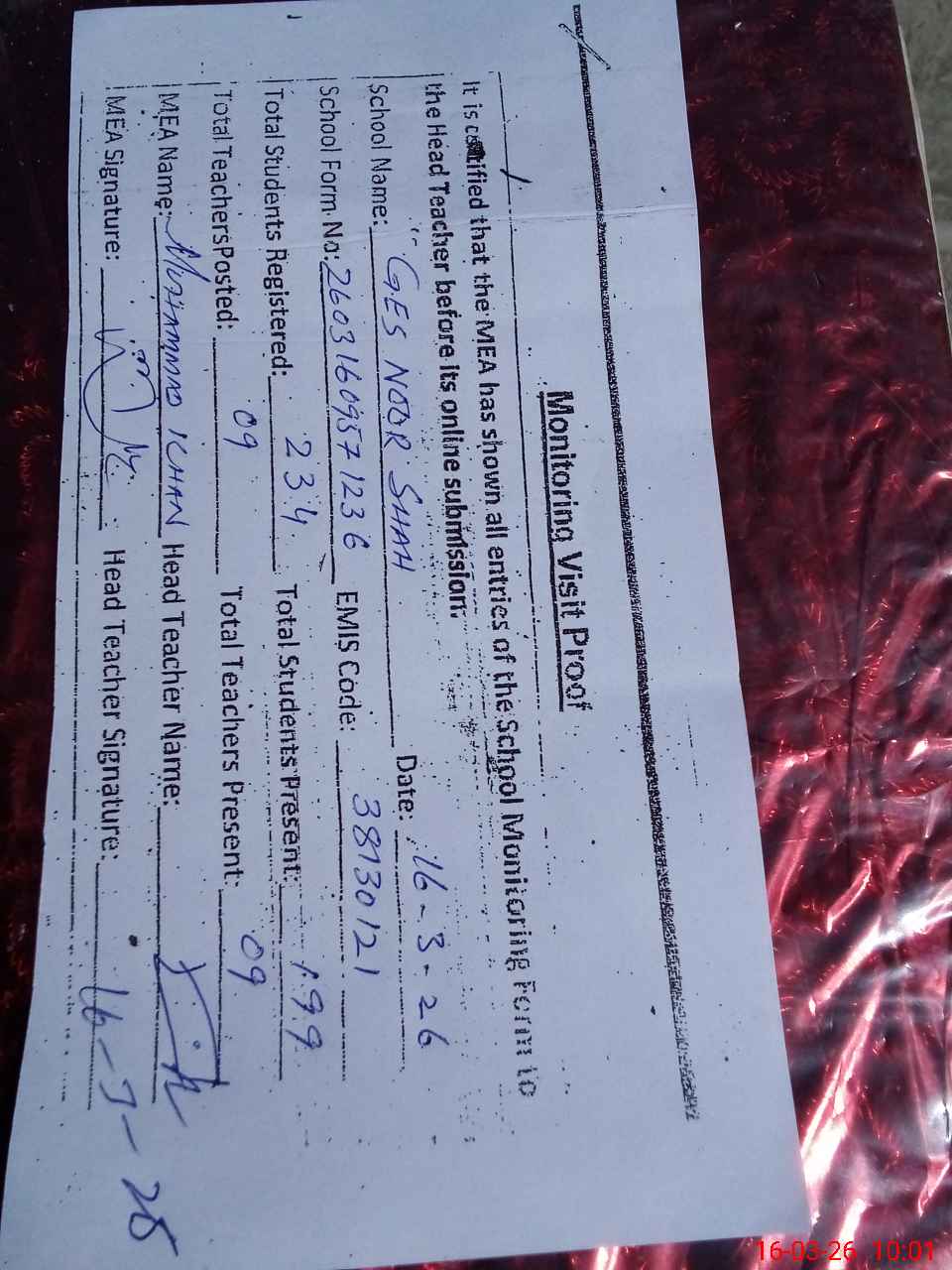 | EMIS Code: 38130121 | Name of School: GES NOOR SHAH | |||