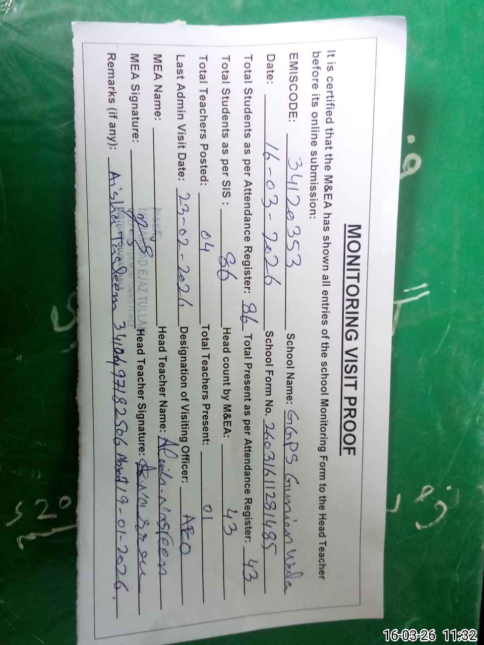| EMIS Code: 34120353 | Name of School: GGPS GUNIAN WALA | |||