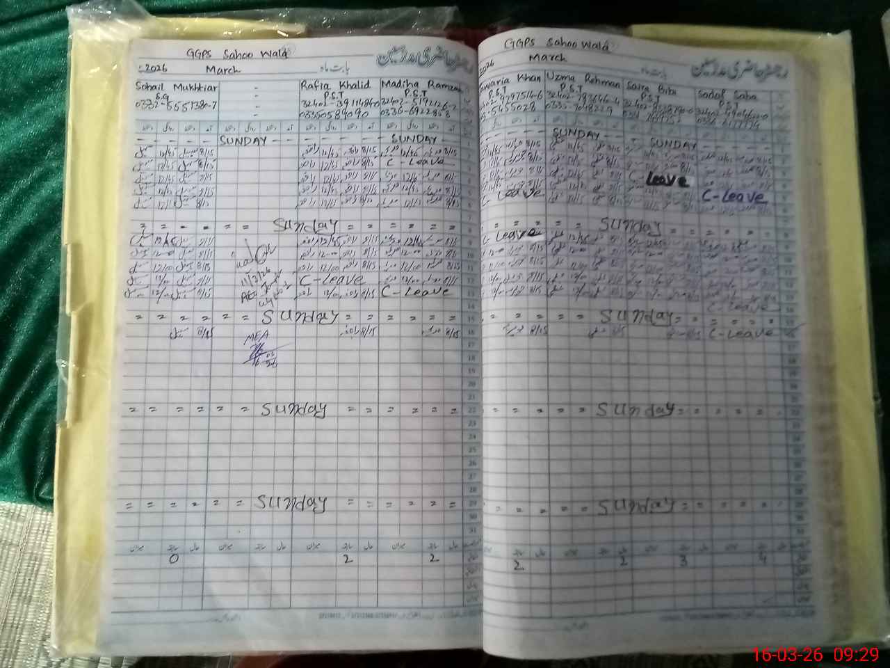| CNIC | Full Name | Designation | R/C | Absence During Last Calender Month |