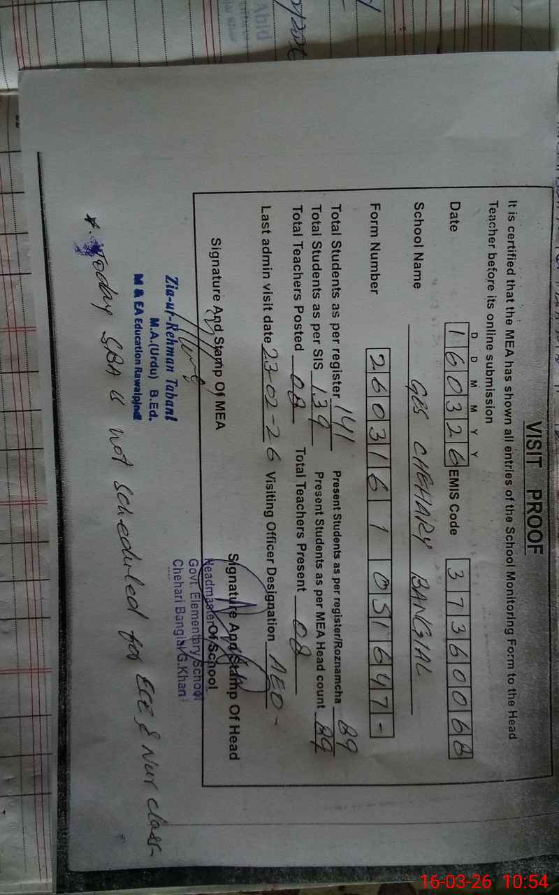 | EMIS Code: 37360068 | Name of School: GES CHEHARY BANGIAL | |||