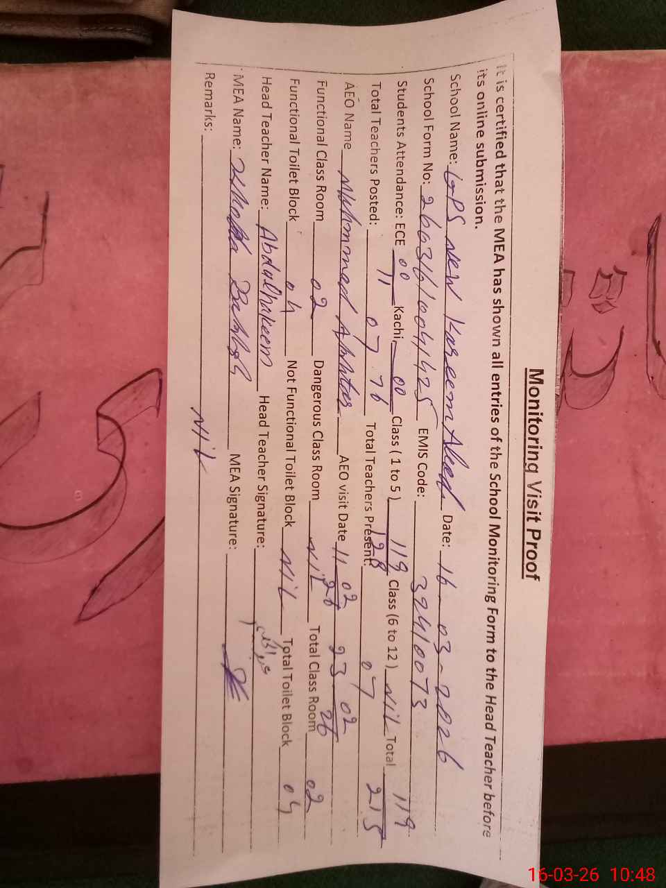 | EMIS Code: 32410073 | Name of School: GPS NEW KARIM ABAD | |||