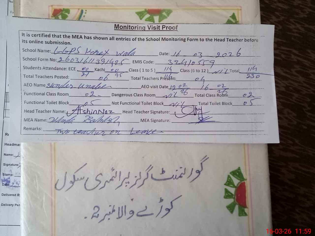 | EMIS Code: 32410559 | Name of School: GGPS KOREY WALA NO. 2 | |||