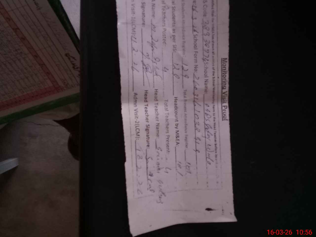 | Attendance Register | Head Teacher | MEA with School | Visit Proof |