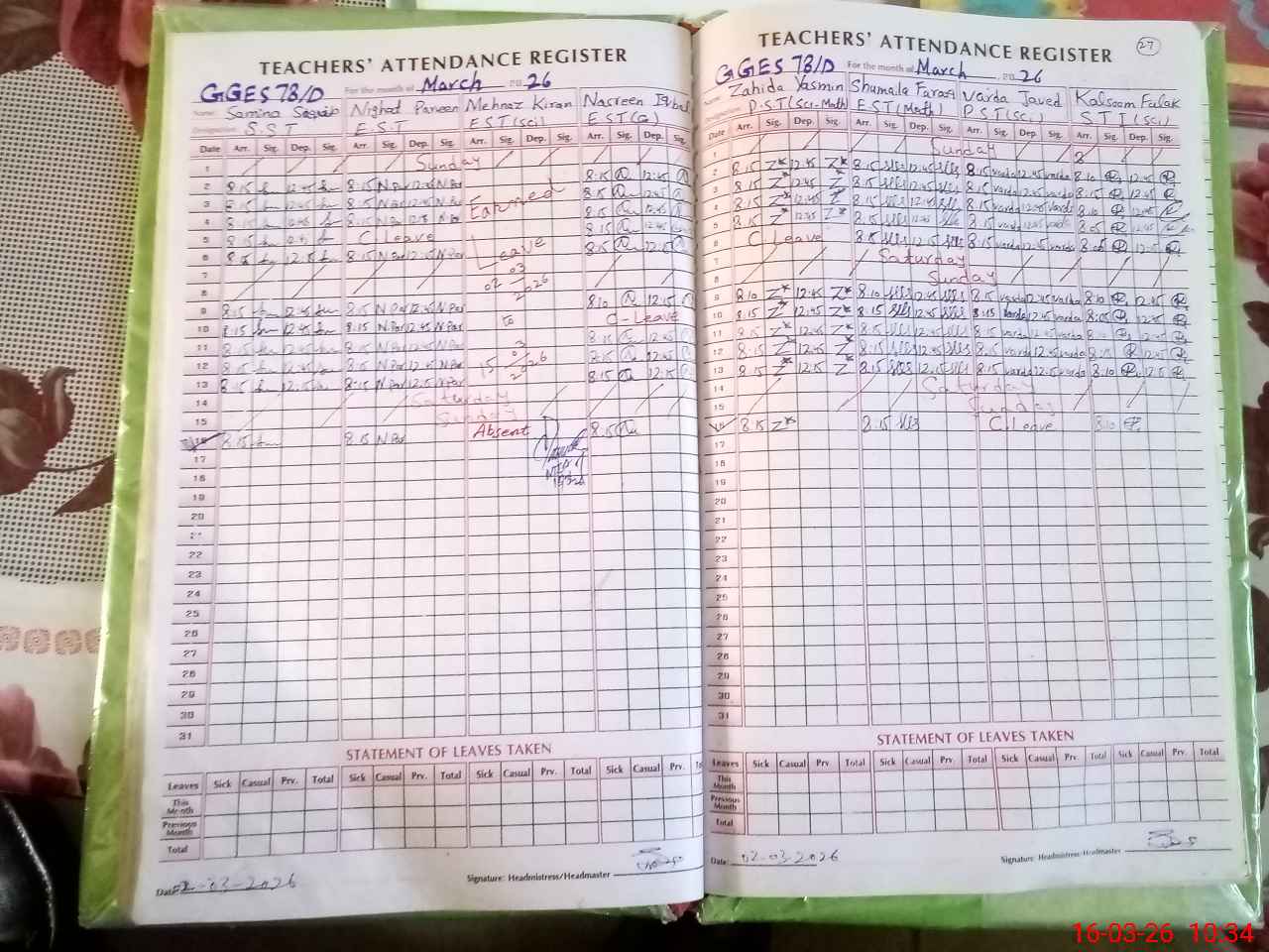 | 36**** | Va**** Ja**** | PST Science/Maths | Regular | 2 | 0 | 0 | 0 | 0 | 0 | 0 | 0 | 2 | Casual |