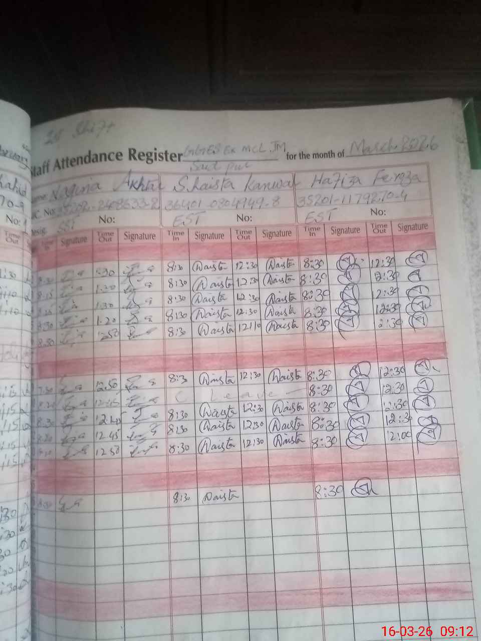 | 35**** | Sa**** Kh**** | PST Science/Maths | Regular | 15 | 0 | 0 | 14 | 0 | 0 | 0 | 0 | 1 | Maternity |