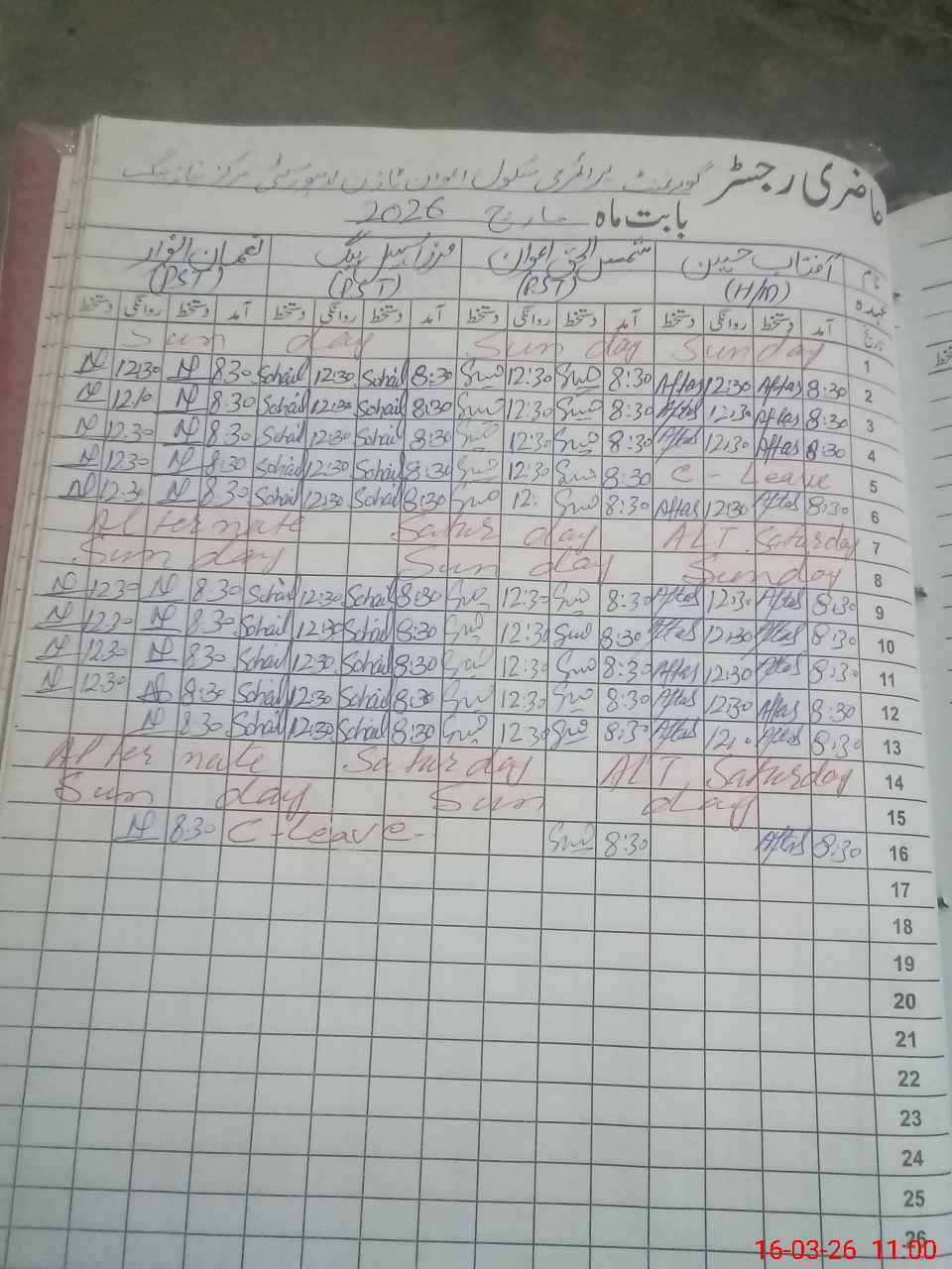 | Remarks (Use Separate Page if Required): 1 Imran Masih on stop gap as per attendance register but written order not available in the school so marked him absent | |||||