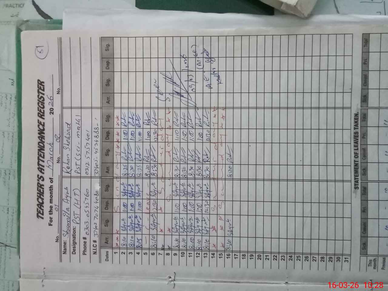 | Name: Sh**** Ay**** Designation: (School Headmaster's/Headmistress's) PST Phone/Cell Number: 03**** |