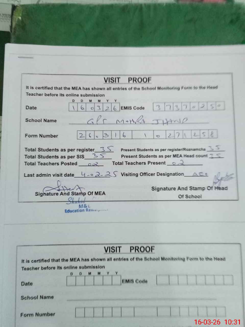 | EMIS Code: 37370250 | Name of School: GPS MOHRA JAND | |||