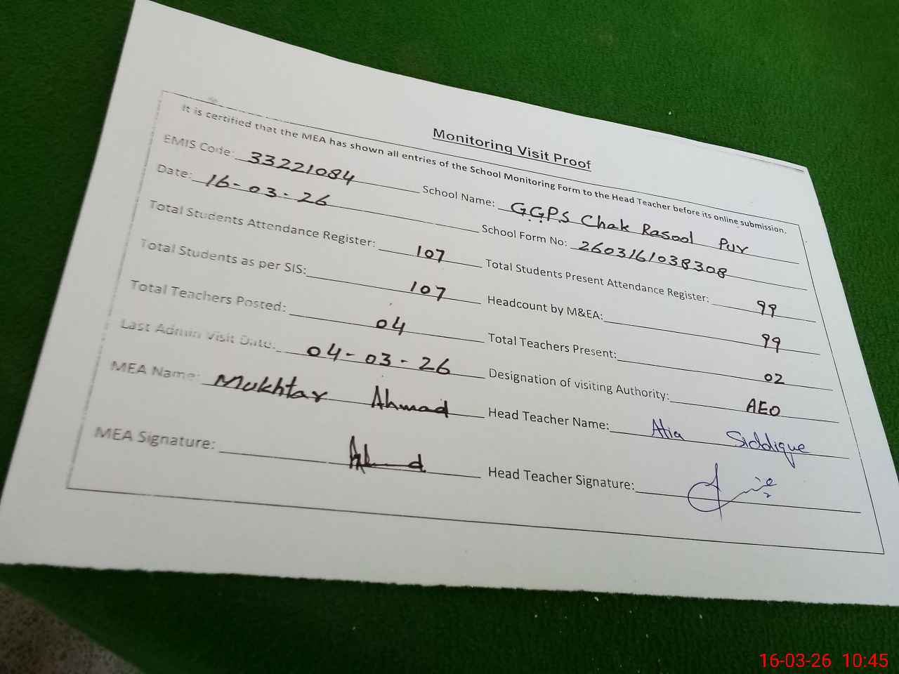 | EMIS Code: 33221084 | Name of School: GGPS CHAK RASOOL PUR | |||