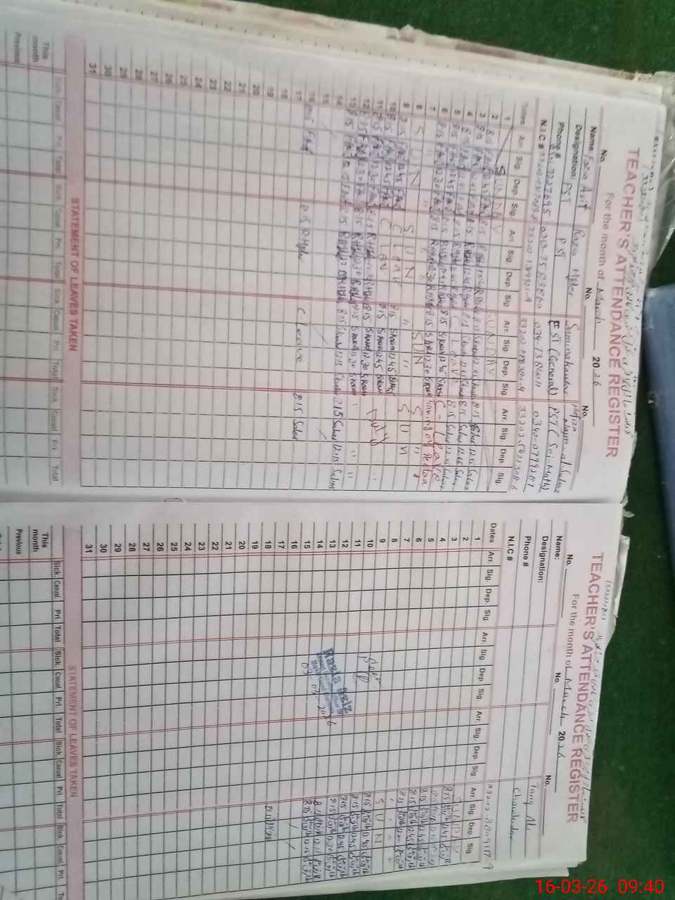 | Name: FO**** AR**** Designation: (School Headmaster's/Headmistress's) PST Phone/Cell Number: 03**** |
