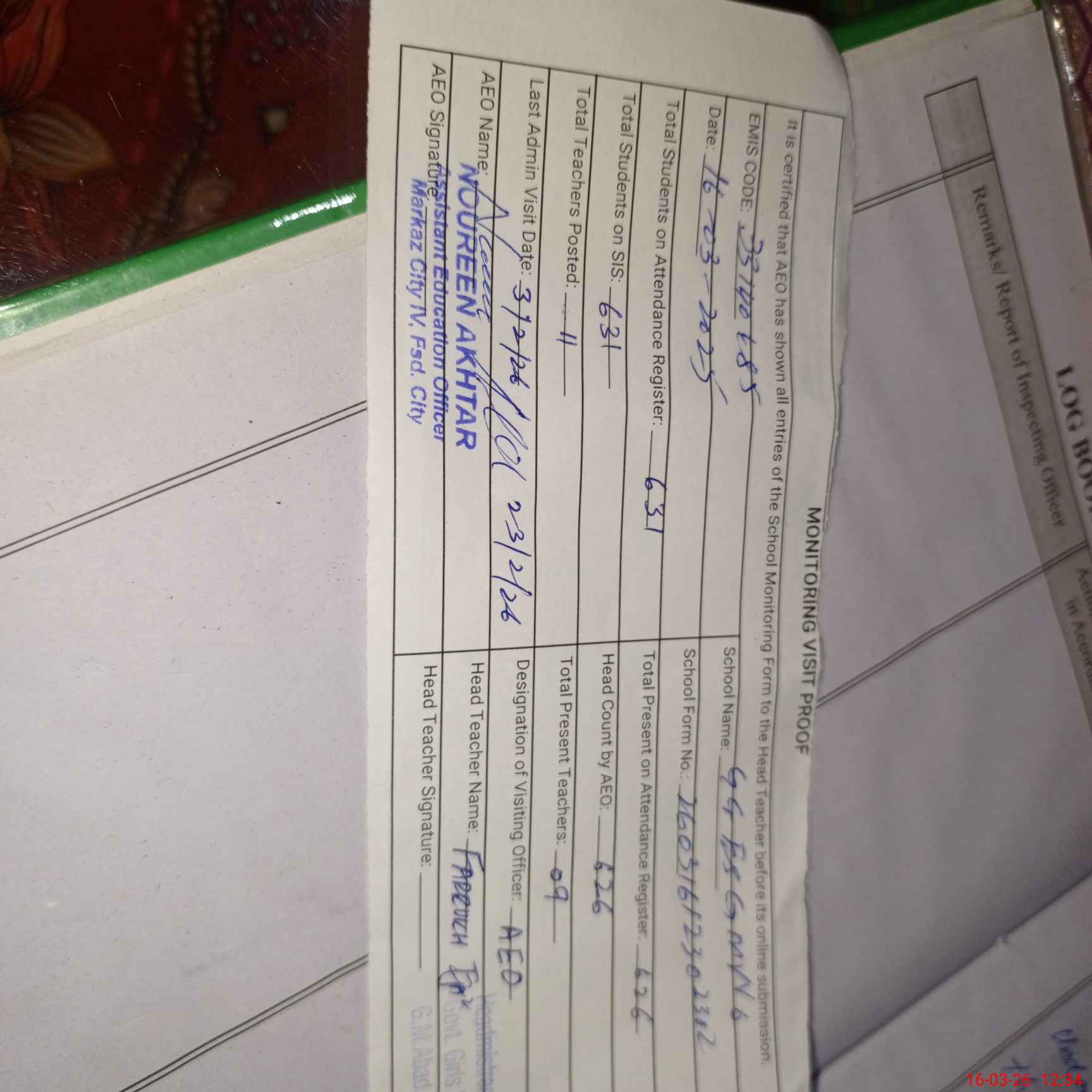 | EMIS Code: 33140485 | Name of School: GGES GHULAM MUHAMMAD ABAD NO. 2 | |||