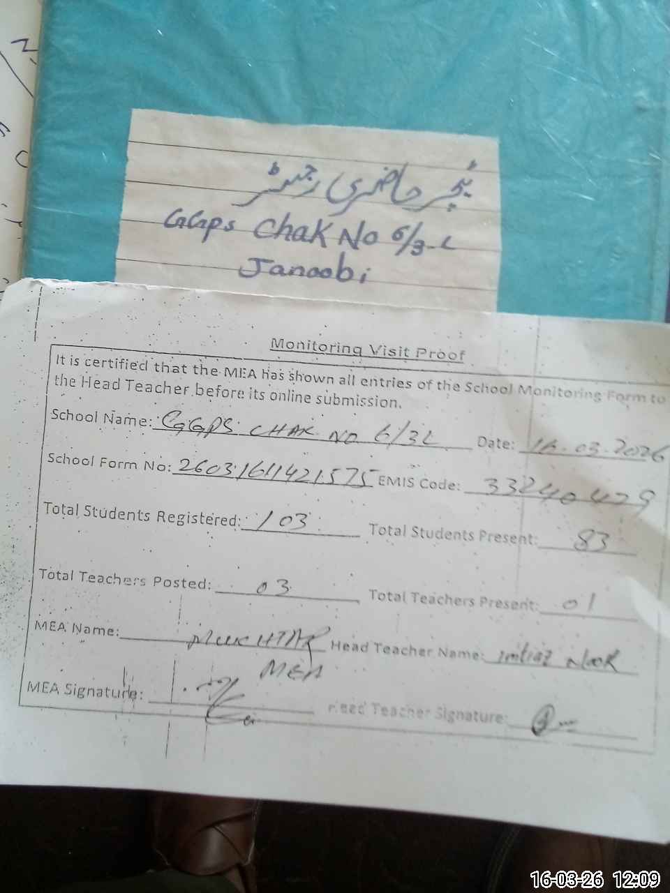 | EMIS Code: 33240479 | Name of School: GGPS CHAK NO 6/3-L JANOBI | |||