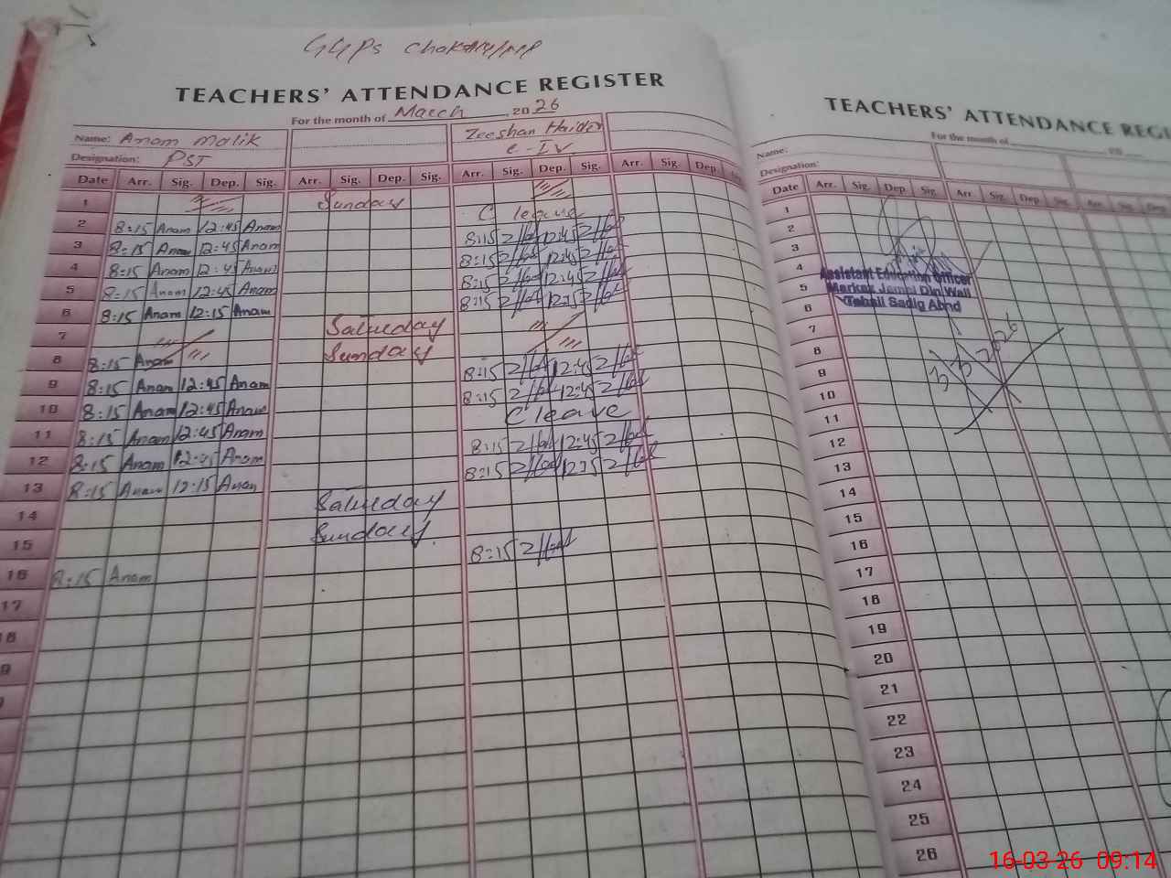 | Name: An**** Ma**** Designation: (School Headmaster's/Headmistress's) PST Phone/Cell Number: 03**** |