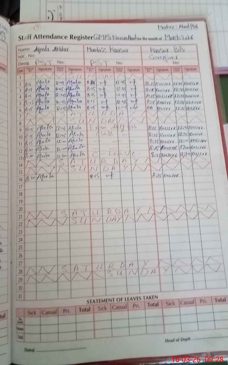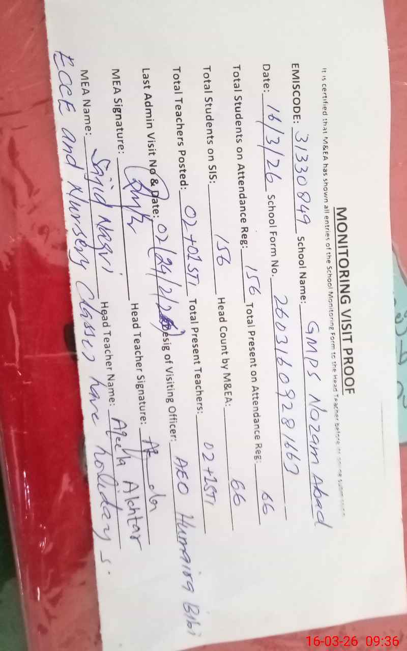 | EMIS Code: 31330849 | Name of School: GMPS NAZAM ABAD | |||