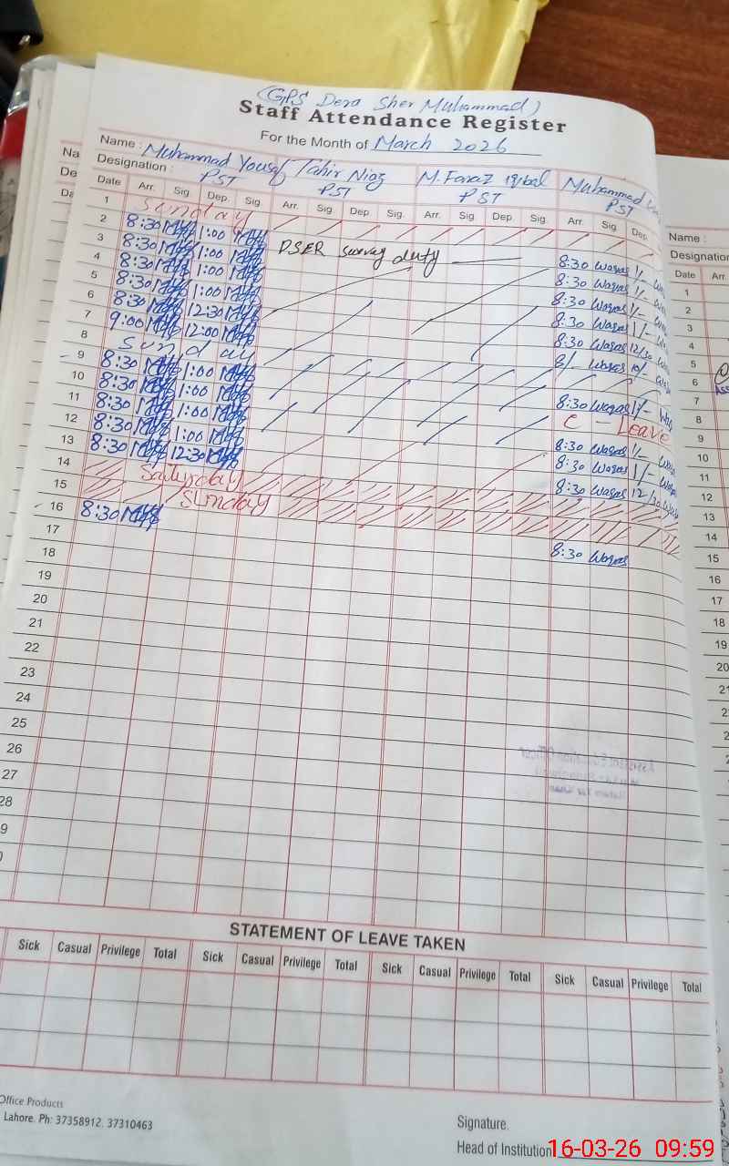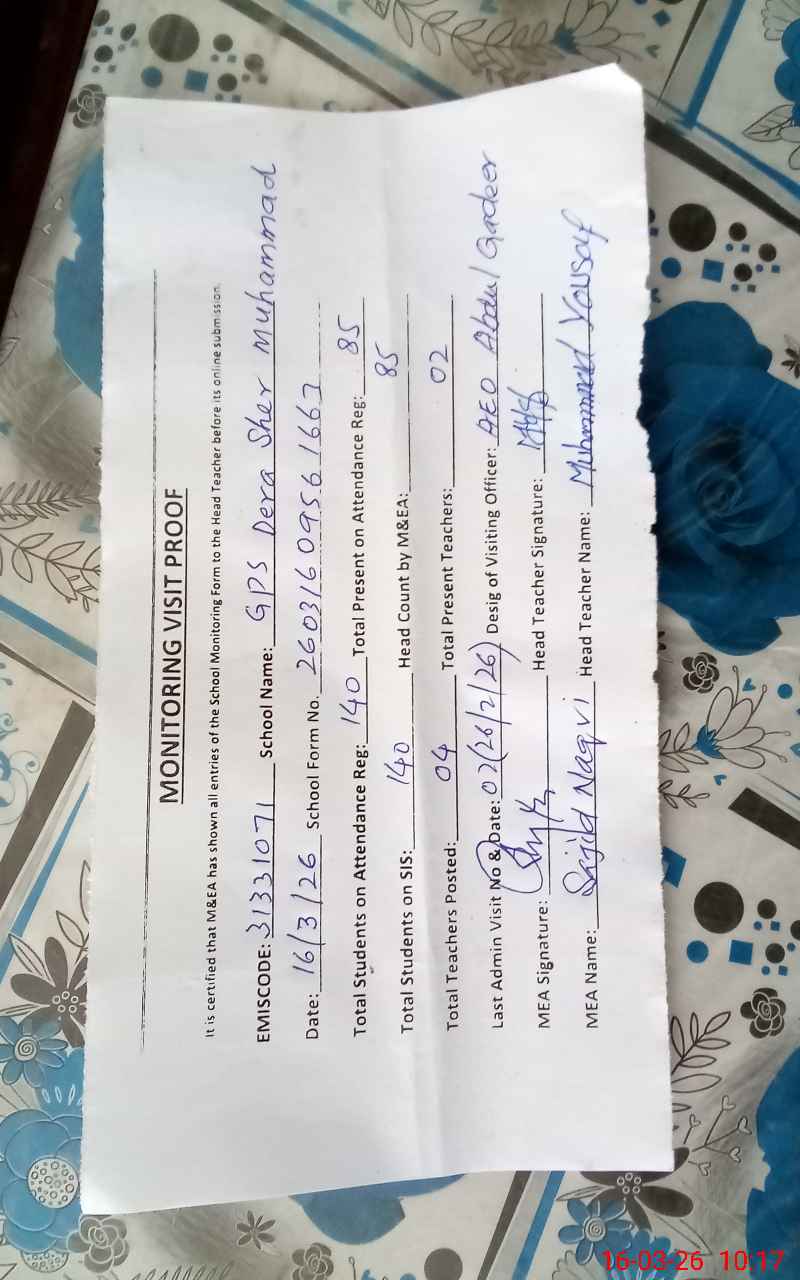 | EMIS Code: 31331071 | Name of School: GPS DERA SHER MUHAMMAD | |||