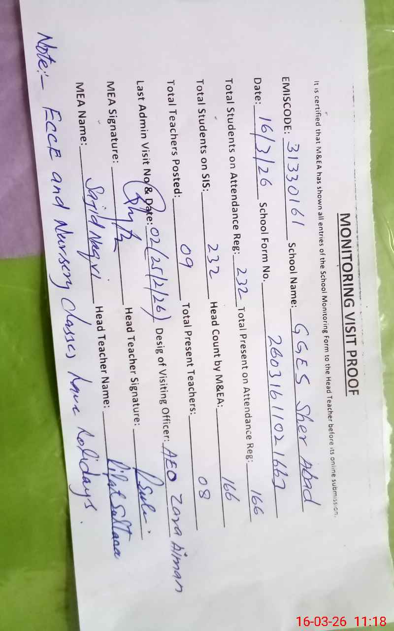 | EMIS Code: 31330161 | Name of School: GGES SHER ABAD | |||