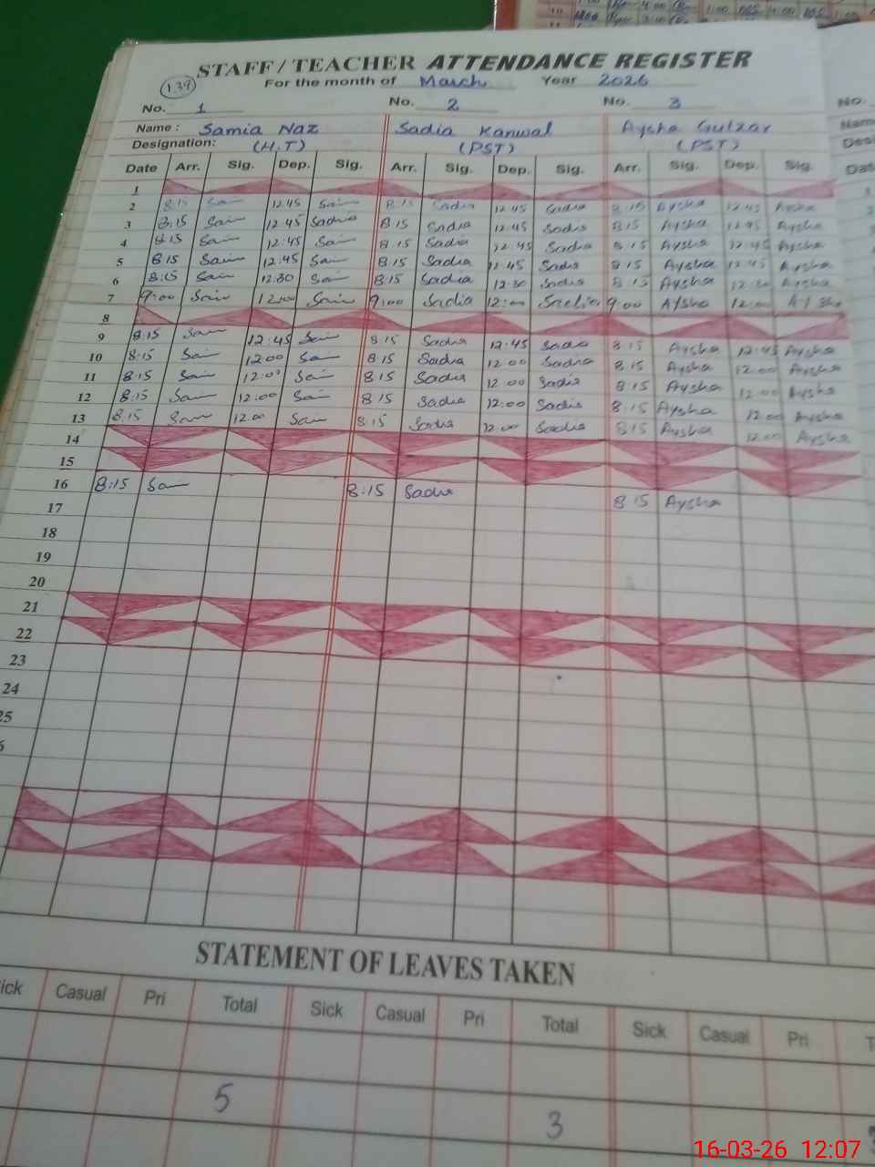 | 36**** | Lu**** Re**** | PST Science/Maths | Regular | 0 | 0 | 0 | 0 | 0 | 0 | 0 | 0 | 0 | Maternity |