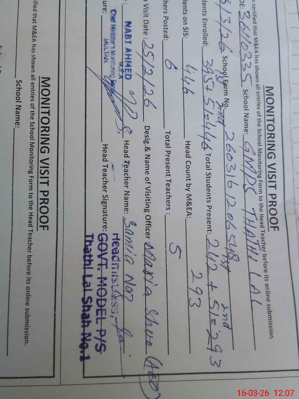| EMIS Code: 36110335 | Name of School: GMPS THATHI LAL | |||