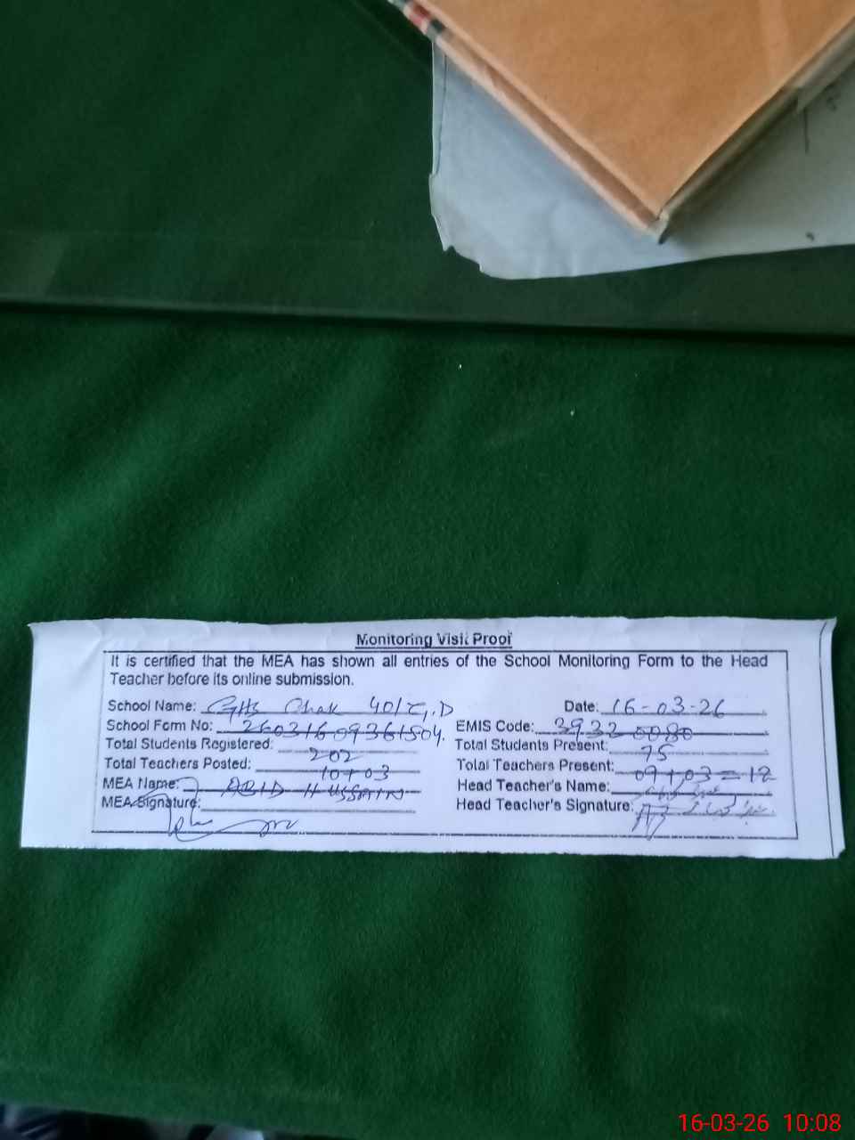| EMIS Code: 39320080 | Name of School: GHS 40/G.D | |||
