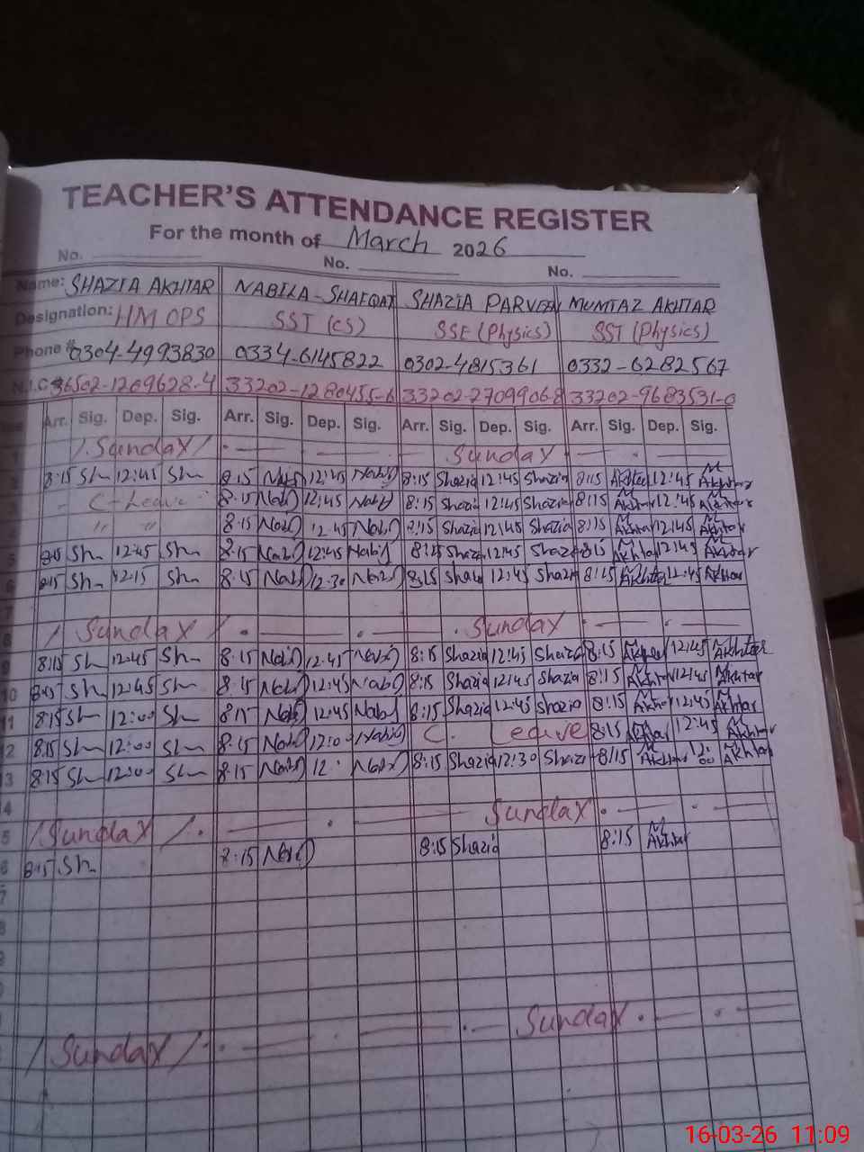 | Name: SH**** AK**** Designation: (School Headmaster's/Headmistress's) S.S.T.( GEN) Phone/Cell Number: 03**** |