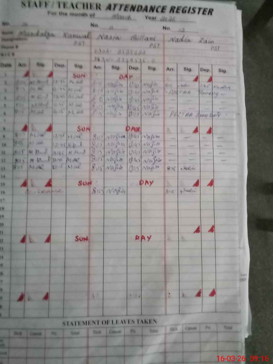 | 35**** | Ay**** Sh**** | PST Arts | Regular | 12 | 0 | 0 | 12 | 0 | 0 | 0 | 0 | 0 | Maternity |