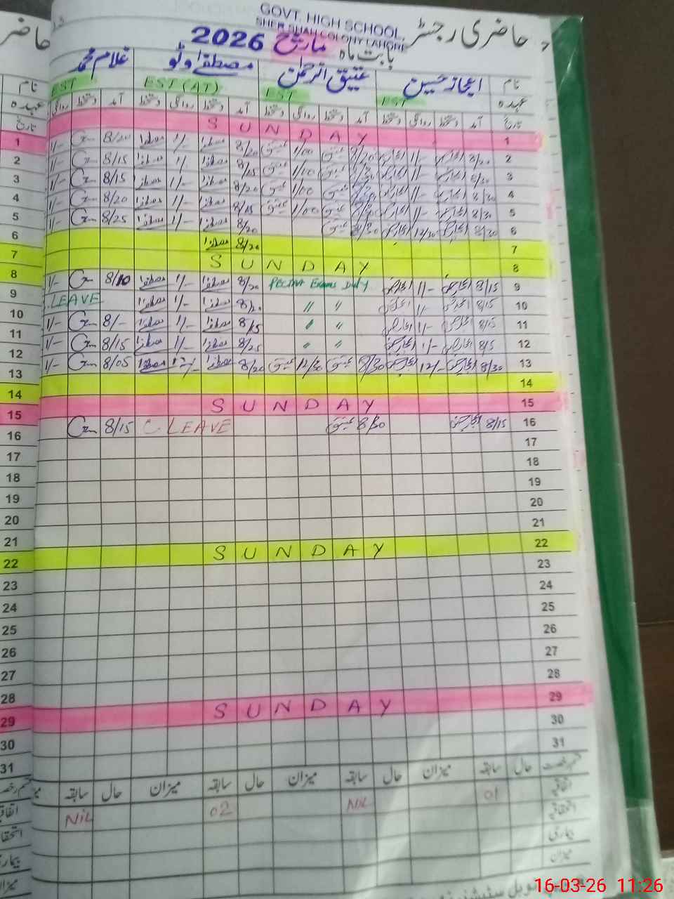 | CNIC | Full Name | Designation | R/C | Absence During Last Calender Month |