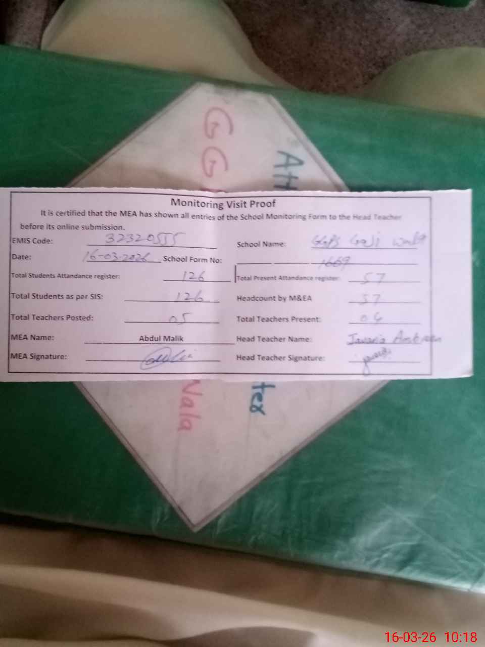 | EMIS Code: 32320555 | Name of School: GGPS GAJI WALA | |||