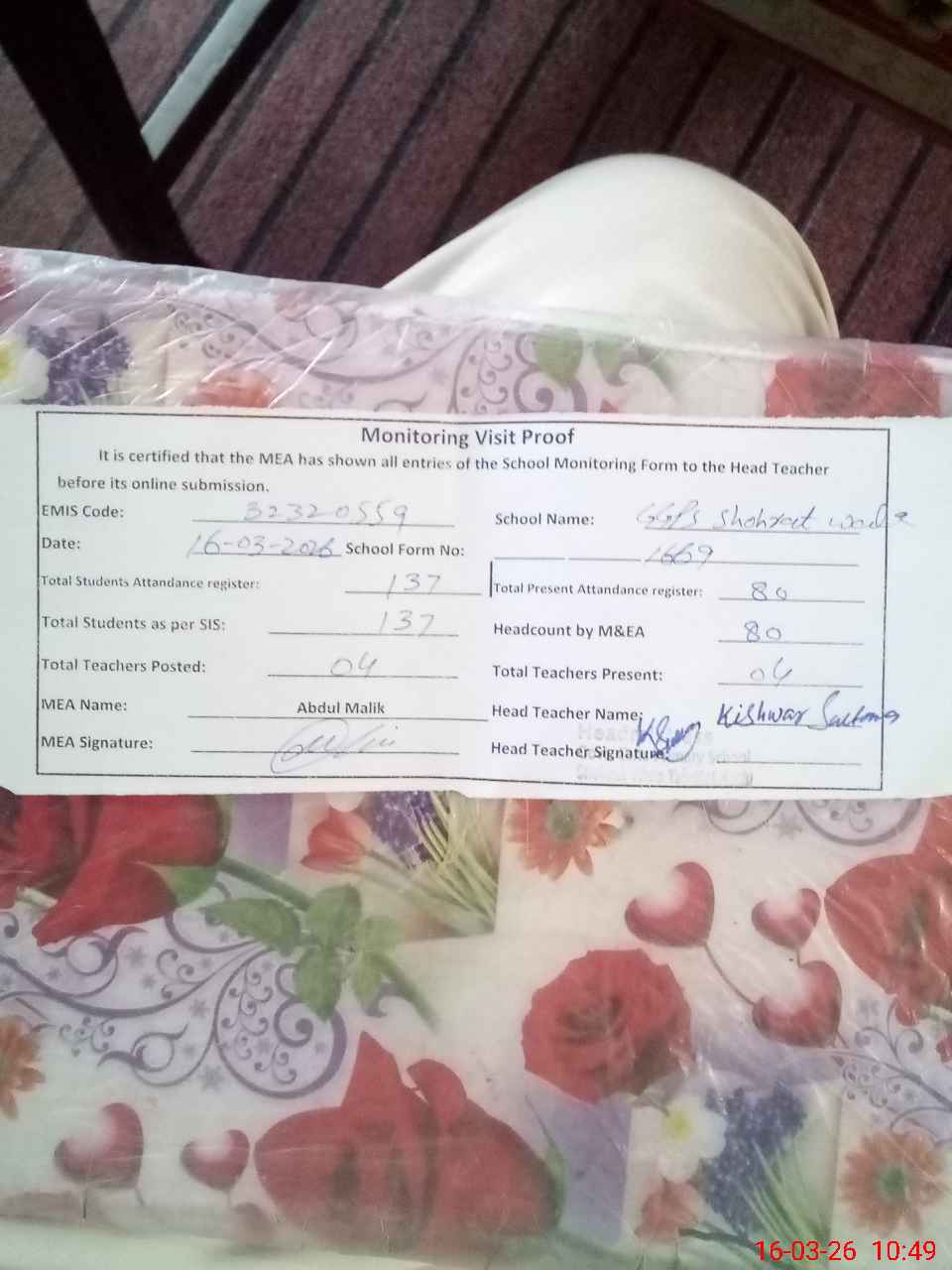 | EMIS Code: 32320559 | Name of School: GGPS SHOHRAT WALA | |||