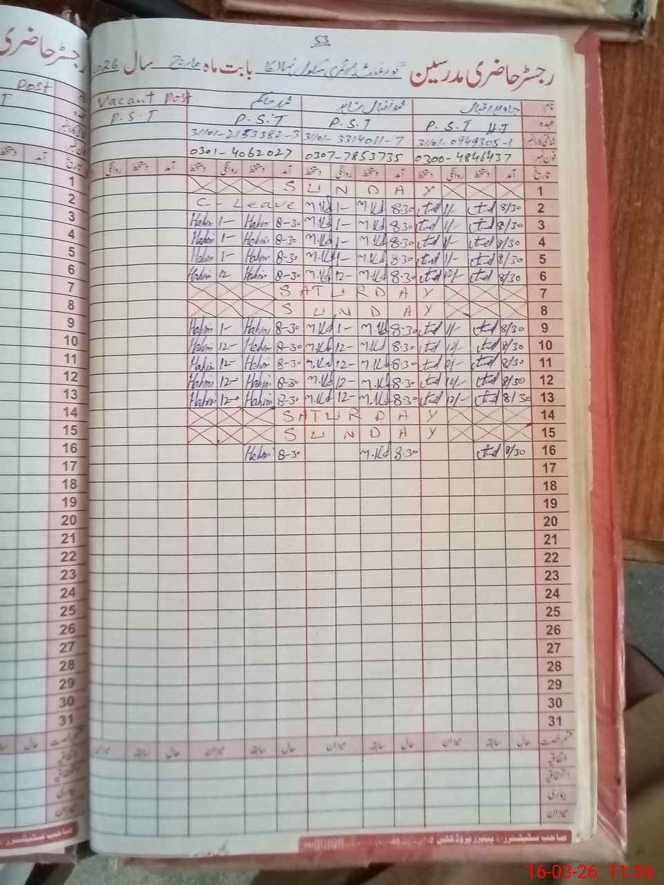 | Name: Ja**** Iq**** Designation: (School Headmaster's/Headmistress's) PST Phone/Cell Number: 03**** |